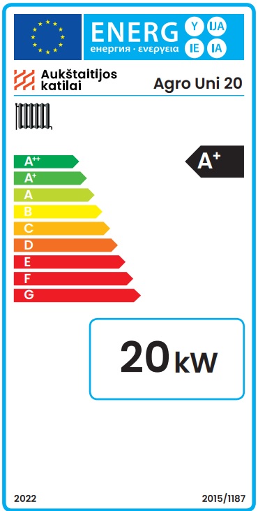 Granulu katls Agro UNI 20 kW, komplektā ar 20 kW “Zenono” degli un 600 l bunkuru